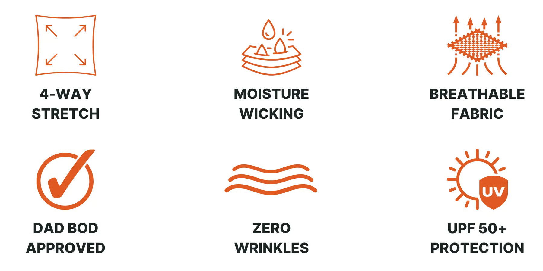 Not only is the material something you've never felt before but our polos are stain/beer resistant, moisture wicking, 4-way stretch, UPF 50+ protection, and they look bada**!