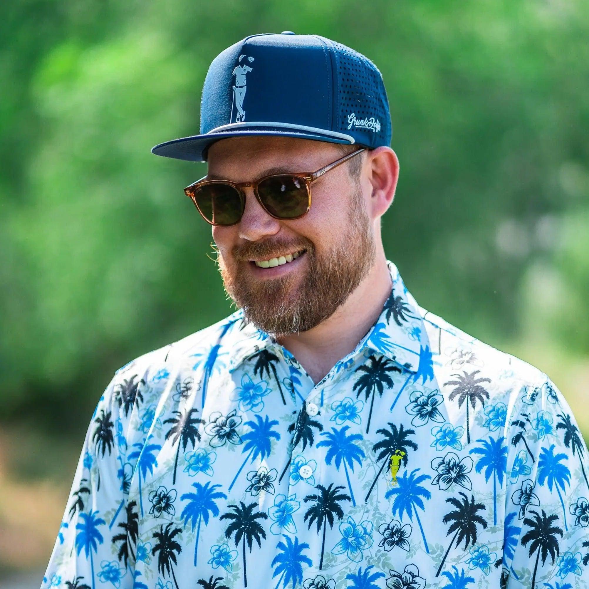 Make a statement on the golf course with this Navy Grunk Hat! Stylish and breathable, its navy blue color will have you looking sharp. You can sip on your favorite drink while you make your way around the course. Its classic, clean look is perfect for any kind of weather!
