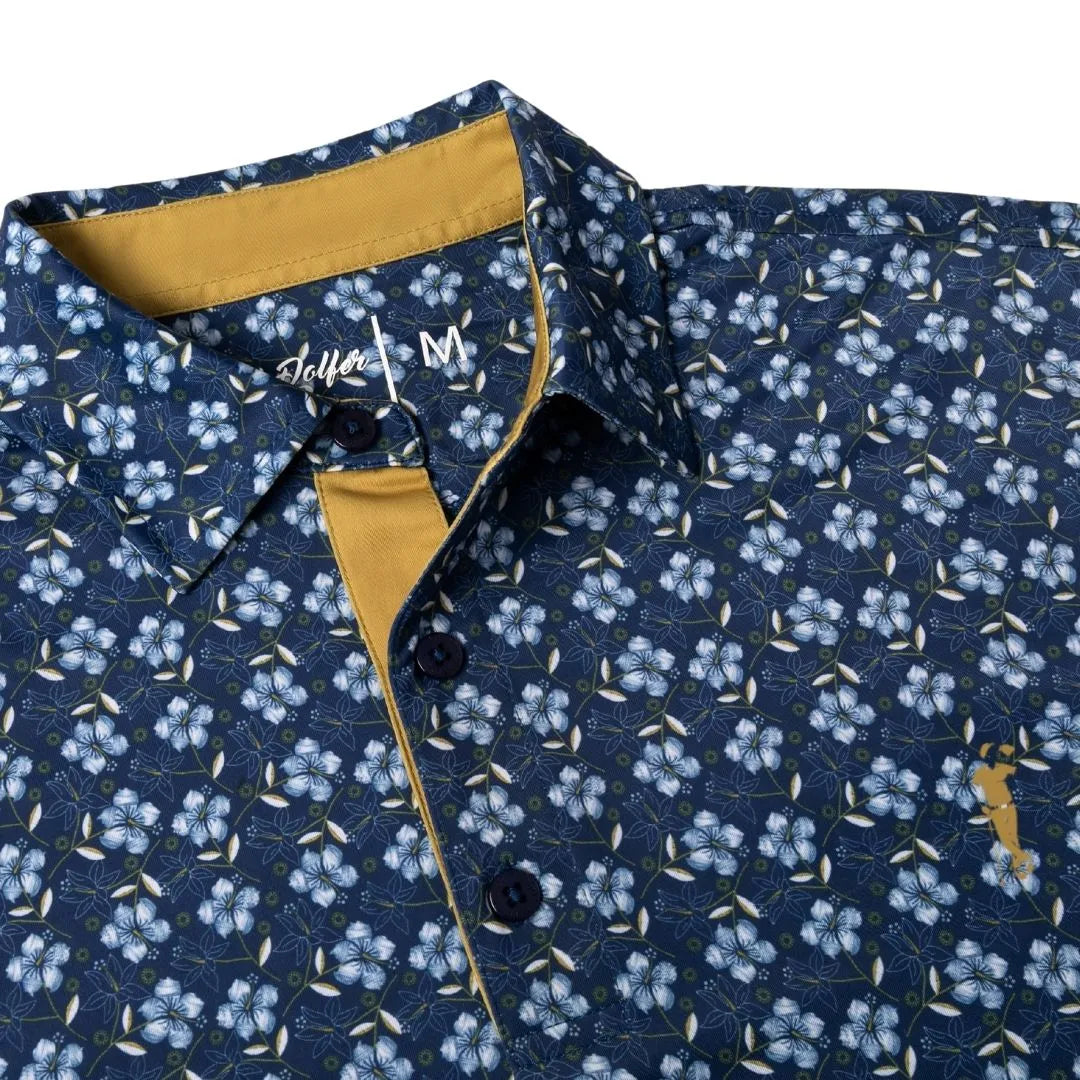 Embrace the island vibes with our Stitched Hawaiian shirt. The deep blue and gold accents add a touch of tropical elegance to this office-approved shirt. Perfect for casual Fridays or a day at the beach. Mahalo!