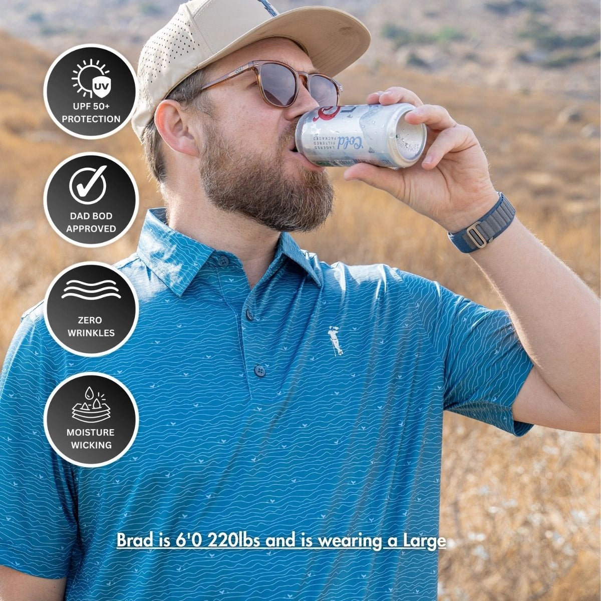 Not only is the material something you've never felt before but our polos are stain/beer resistant, moisture wicking, 4-way stretch, UPF 50+ protection, and they look bada**!