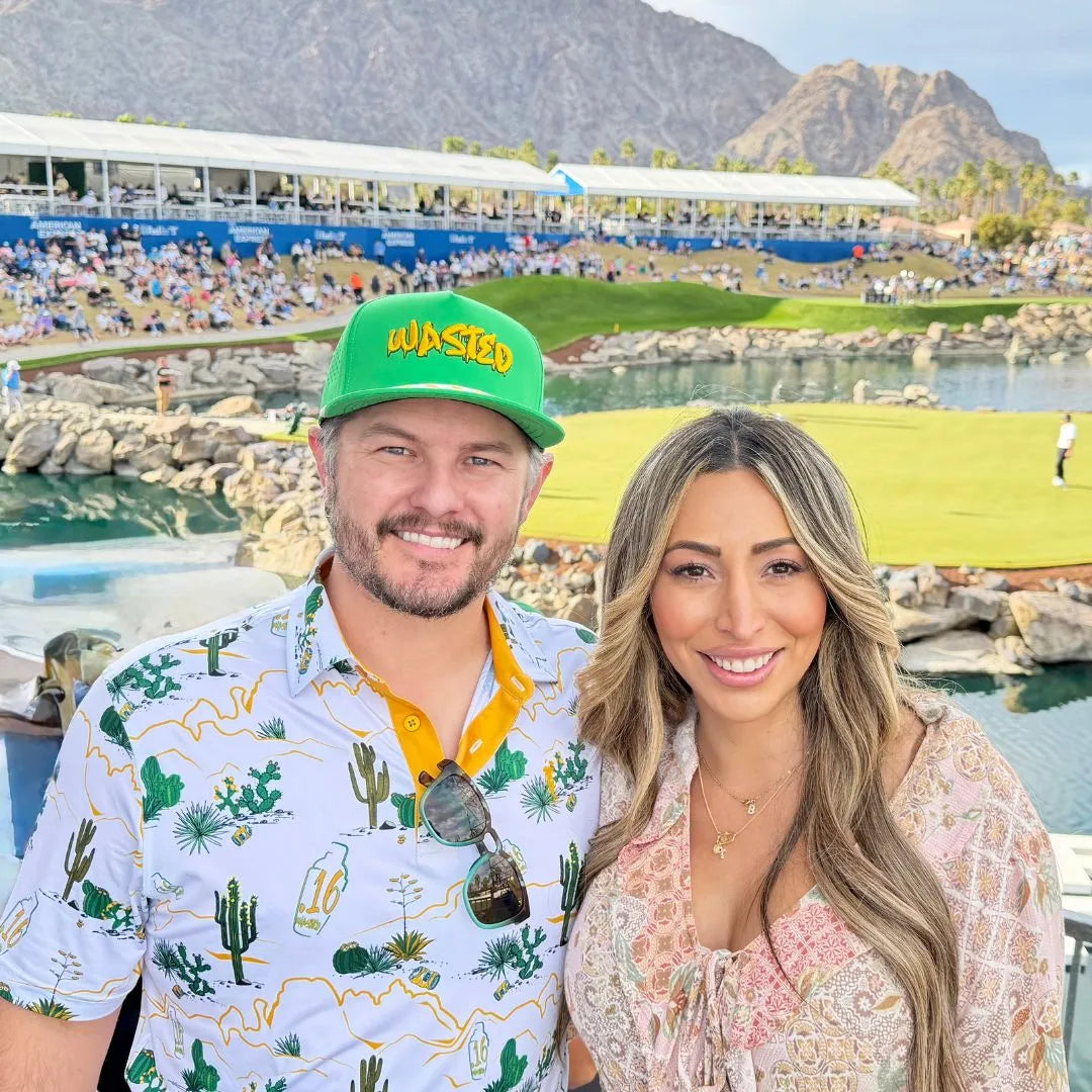 Built for the loudest hole in golf and the wildest energy in the desert, inspired by the legendary atmosphere of the Waste Management Phoenix Open. Featuring a bold desert-inspired pattern and Grunk’s custom “.16 Wasted” logo, this polo is a tribute to controlled chaos, cold drinks, and golf without a dress code mentality.
